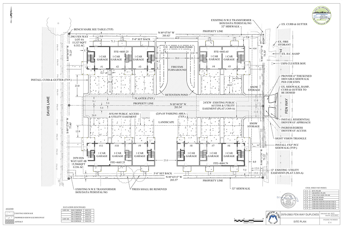 SEAK worked with local developers, architects, and contracts to gain various City of Bozeman and State approvals for the development of an 11-unit duplex/triplex project off of Davis Lane. SEAK secured City of Bozeman site plan approval, infrastructure approval, stormwater permits, street cut permits, and building permits for the project. SEAK also secured DEQ water and sewer main extension approval for the project. SEAK provided construction inspection and documentation through the infrastructure construction phase and will assist in close out of all applicable permits at project close. SEAK is currently assisting in condo declaration review through the City of Bozeman for this project.